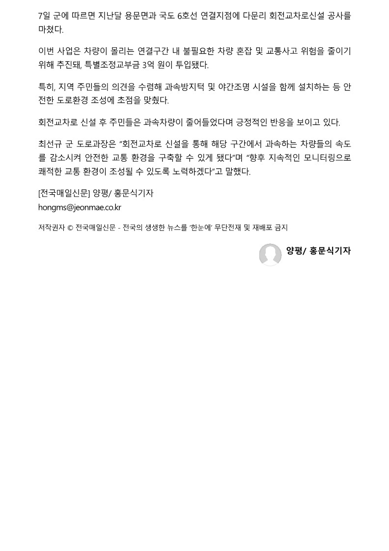 2023.06.07 Àü±¹¸ÅÀϽŹ®_°æ±âµµ ¾çÆò±º ¿ë¹®¸é ´Ù¹®¸® 940 ȸÀü±³Â÷·Î
